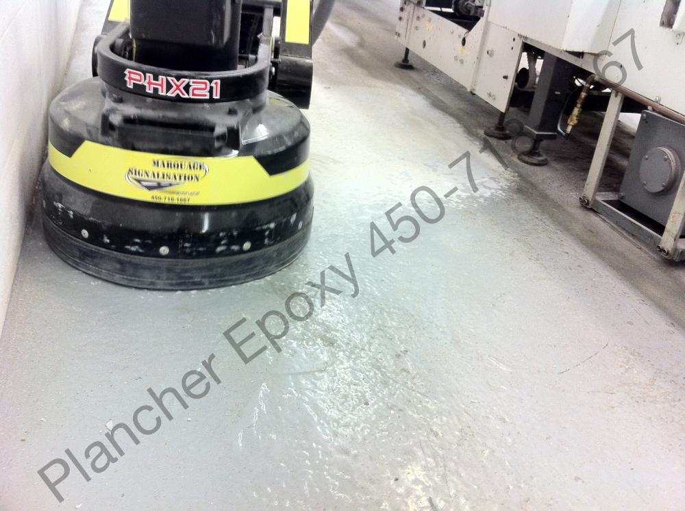 Plancher en béton poli, sans risque de délamination.